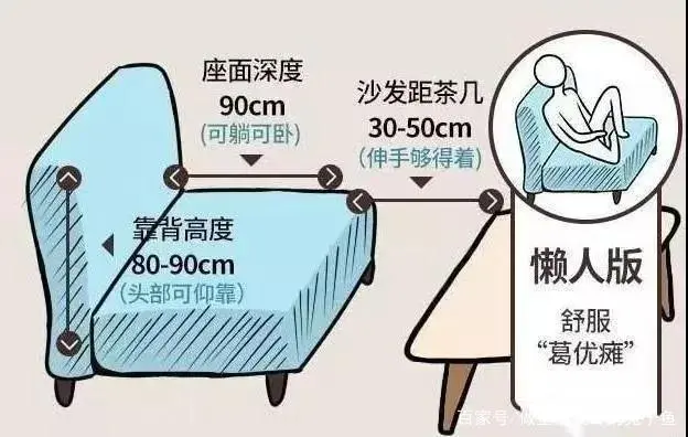 ⑴客厅主要家具沙发、茶几常规合理尺寸范围数值参考: